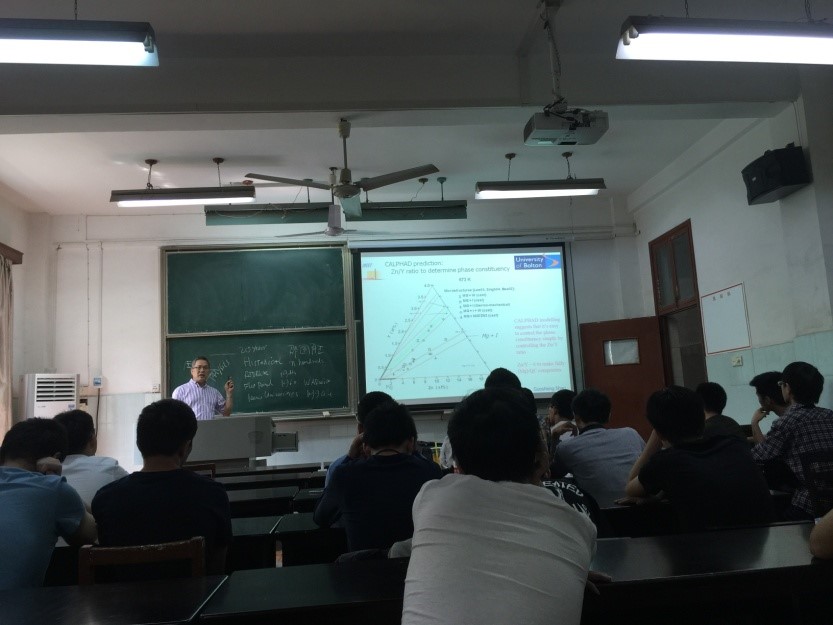 2016年4月28日,来自英国Bolton大学的G. Shao教授在教2-208为2015中外合作办学班授课。Shao教授首先为员工们介绍了英国大学的体制和类别,以及介绍了博尔顿在英国工业史上的重要地位。随后,Shao教授为员工们讲授了材料科学的部分基础内容,主要围绕合金的相图以及合金的设计等方面展开,为员工讲述材料的设计、制备和应用之间的关系。