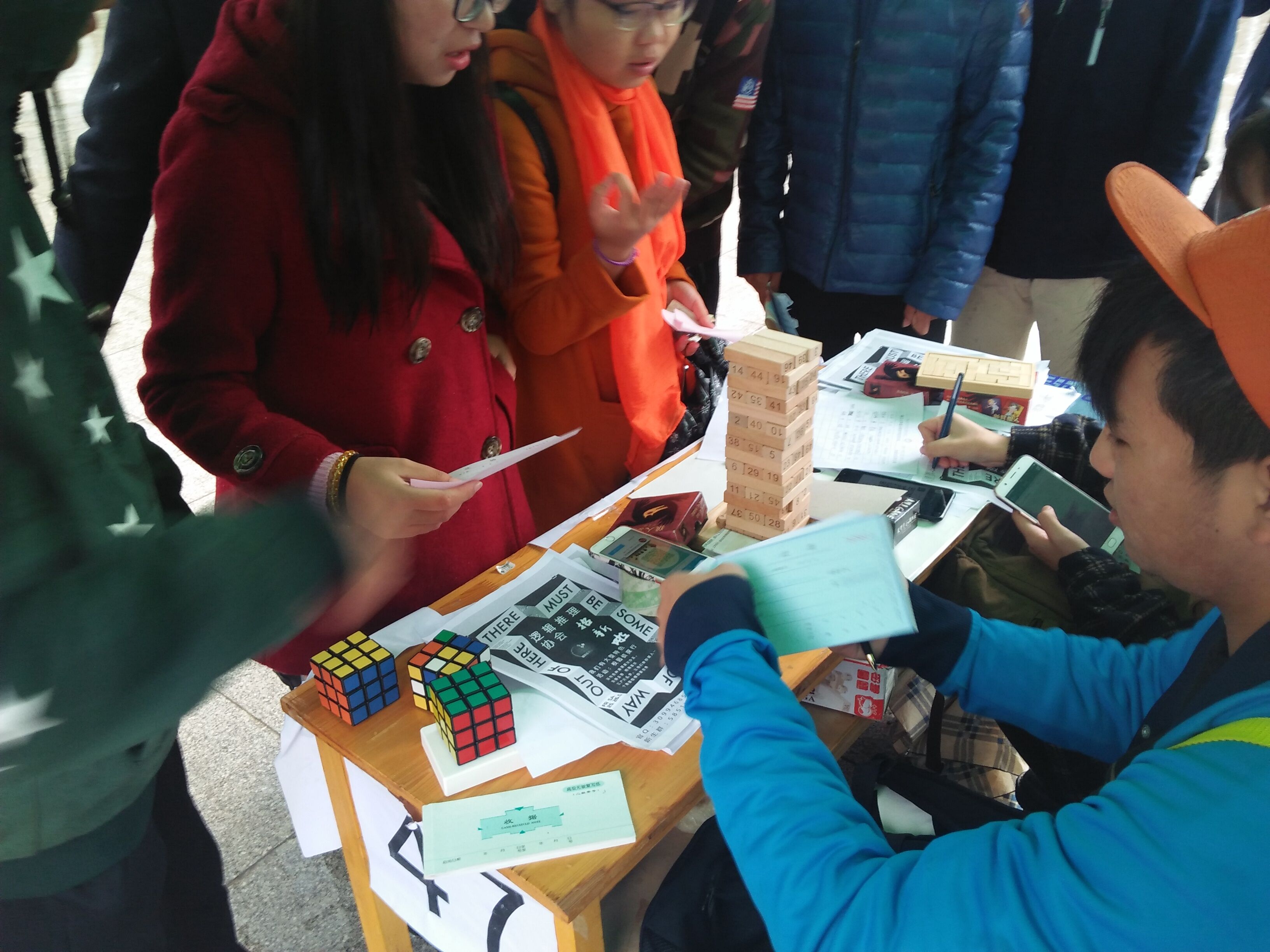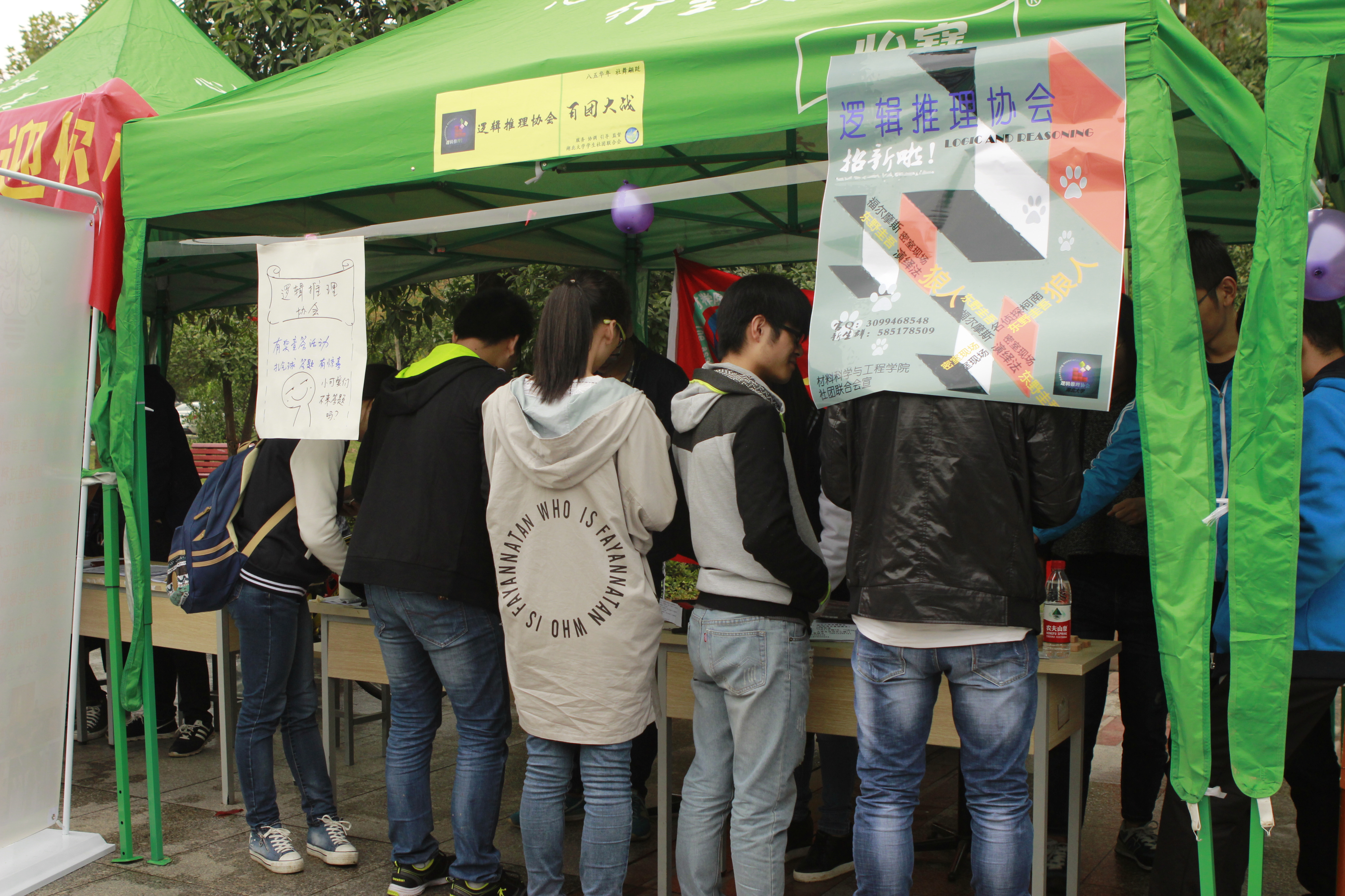 10月29日,结束了两天的本部招新活动后,“战场”转移到了通识教育公司。在行政楼前面的广场上,近60支社团再次展开招新角逐。来自16级新闻传播专业的姚宇飞是逻辑推理协会的一员,很早就来帮助社团工作人员进行招新工作。他表示自己一直就是一个桌游迷,所以很早就加入了社团的新生群,也在里面认识了一些有共同兴趣爱好的朋友。羽协这边,延续了在本部的吸引力,招新点周围总是围满了人!材料论坛稍显尴尬,但是也有不少人前来咨询报名。