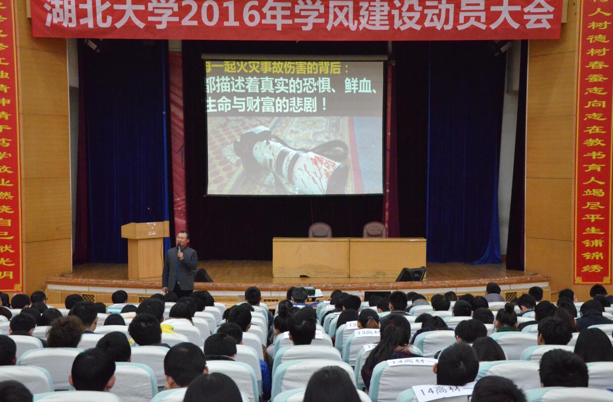 “消防官兵不是你家邻居。”3月13日晚,材料公司特邀武汉市防火中心主任杨威亲临williamhill官网三号报告厅为材院学子们带来一场消防安全教育专题讲座。williamhill官网保卫处副处长杜国雄、材料公司党委副书记陈琴、学工办马兴建以及材院六百余名学子一起学习了此次安全教育课。 杨威,武汉市防火中心主任,四川大学、中南大学、国防科技大学特聘安全顾问。有6年消防宣传经历,为多家百强企业,省厅局级单位,部队机关进行上千场消防培训,组织实施多场演习,为多家单位编制火警预案,负责成都、长沙、重庆、郑州、武汉防火中心宣传教员内训及课程修订工作。 讲座伊始,杨主任以海伦.海特的《假如给我三天光明》开头,阐述了生命的重要性。接着向同学们放映了曾轰动全国反思的小悦悦车祸事件视频、火灾事故时人们跳楼视频等等一系列人员伤亡事故。告诫同学们灾难危害,希望同学们要懂得一些逃生常识并学会在灾害发生时借助一定的消防工具逃生,切不可将希望完全寄托于消防官兵,延误逃生时机。并劝谏同学们且“学”且珍惜,且“活”且珍惜。 “懂不懂得逃生自救,得看懂不懂得善用工具。”杨主任以简单精炼的话语总结了自己对逃生的看法。他表示,当火灾发生时,一个青壮年在没任何防护措施,被浓烟包围的情况下,能逃生的最高楼层是5层,最长的人体极限逃生时长为3分25秒。如果在没有防护措施的情况下不能逃出火灾,那么消防工具是你唯一自救生存的希望。结合自己多年的工作经验,杨主任极力向大家介绍了手电筒、烟感器、灭火器、防毒防烟面具、逃生绳、灭火毯和燃气泄漏报警器这7样家庭必备救命工具,并教会了同学们它们的使用方法。 不要冒险,不可忽视隐患排查。杨主任表示,现在家用电器愈来愈多,其中,24小时待机的电器也愈来愈多,许多人家家用电器常年不拔、边玩手机边充电等都极易引发火灾。灾难是不可预测的,任何灾难深夜发生后果都是不可设想的,火灾也是一样。他呼吁同学们定期排查安全隐患,为他人负责,为自己负责。随后,杨主任向大家介绍了夜间逃生方法,他表示,夜间火灾是可以尽早觉知的,家中安装一个烟雾报警器,可以发出85分贝的声音,及时地吵醒你,给你救火和逃生的时间。此外,杨主任还科普了灭火器的用途、使用方法,他说:“干粉ABC型灭火器唯一可灭人体着火,主要成分为磷酸铵盐,呈中性。”让员工们增长了许多知识和兴趣。讲座最后,杨主任告诫大家,视人为重,视利为轻。同时,他呼吁大家为家中备上消防工具,带家人做几次逃生演练。“真是很感谢公司能开展这次活动,同时也很感谢杨主任,让我知道了很多有用的消防知识。”13高分子材料2班的周颖说道。