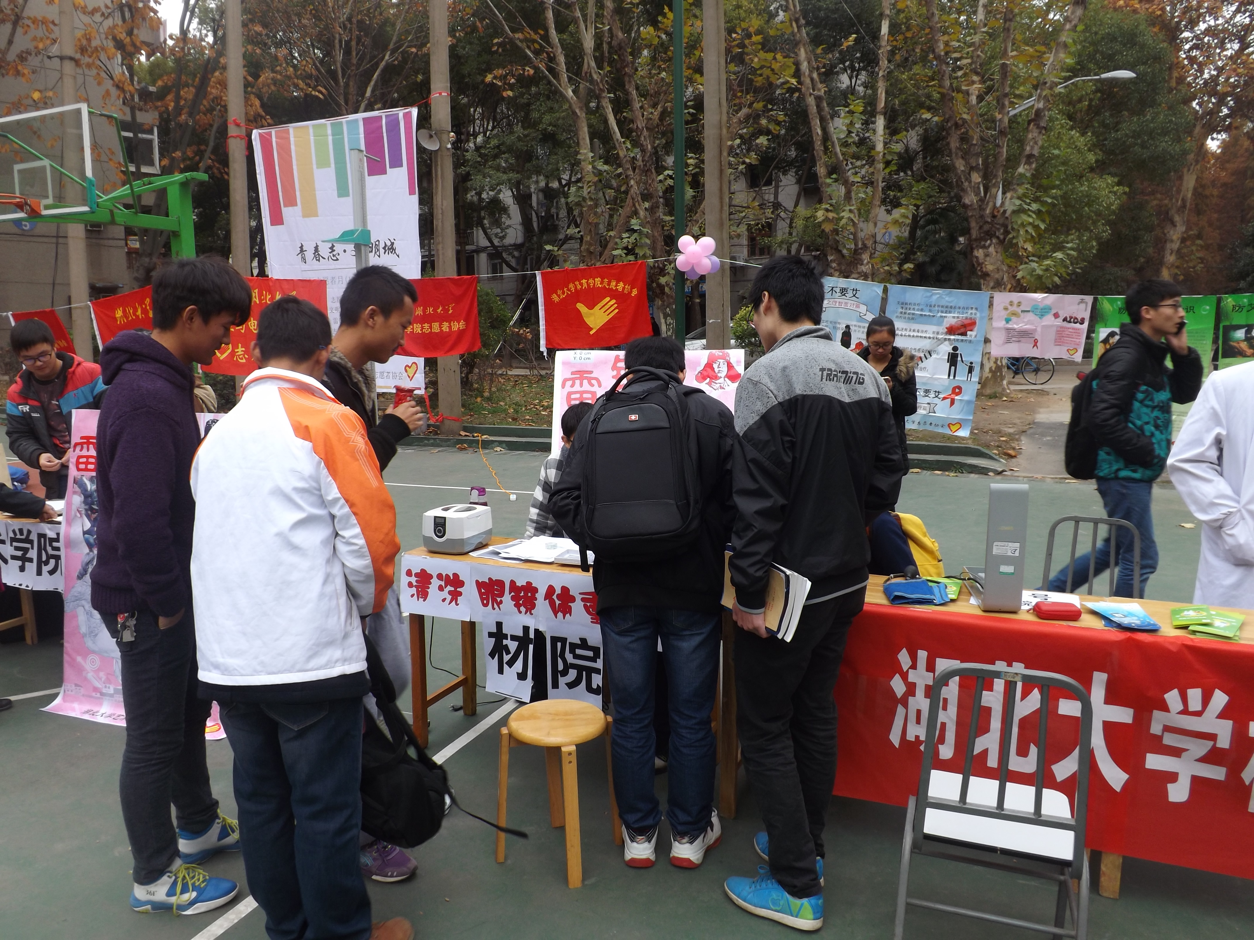 为迎接武汉文明火炬传递和国际志愿者日的到来,12月3日上午11点,由校团委主办、校志愿者协会总队及各院志愿者协会承办的“雷锋一条街,湖大社区行”的志愿者活动在公司社区盛大开展,当然材料公司也是这道亮丽的风景的一部分。 九点钟的时候,全校的志愿者都在教超篮球场聚集,每个院的海报和横幅高高挂起,非常隆重。 活动过程中,美丽的风景如百花齐放。社区服务,老人成为关注的重点对象,老人年龄大了,血压就易升高,因此校医院组织了医生专对此项进行义务服务。再次重点对象就是员工了,参加活动的高分子材料专业的罗婷说”这么多服务,我觉得洗眼镜是最有意义,最实用的“。免费洗眼镜是材料公司的特色服务,由于科技性比较强,而且对员工来说非常实用,所以慕名前来洗眼镜的人也是络绎不绝。“小伙子,你按摩真舒服,我现在全身热血沸腾的,经脉舒畅感觉整个人有活力!”经采访才知道志愿者们在活动前也是进行了精心的准备:查找资料,看视频,请教专业人士等。 活动结束后,虽然志愿者们都很累,但是他们还是载着满心的欢喜回“家”。 “我们是一家人,我们一直在行动“志愿者们就是坚定这个信念,心怀”敢为人先,追求卓越“的武汉精神一如既往的向前走,奉献自己的爱心,温暖他人的心窝。 ( 材料公司学通社 徐申正)