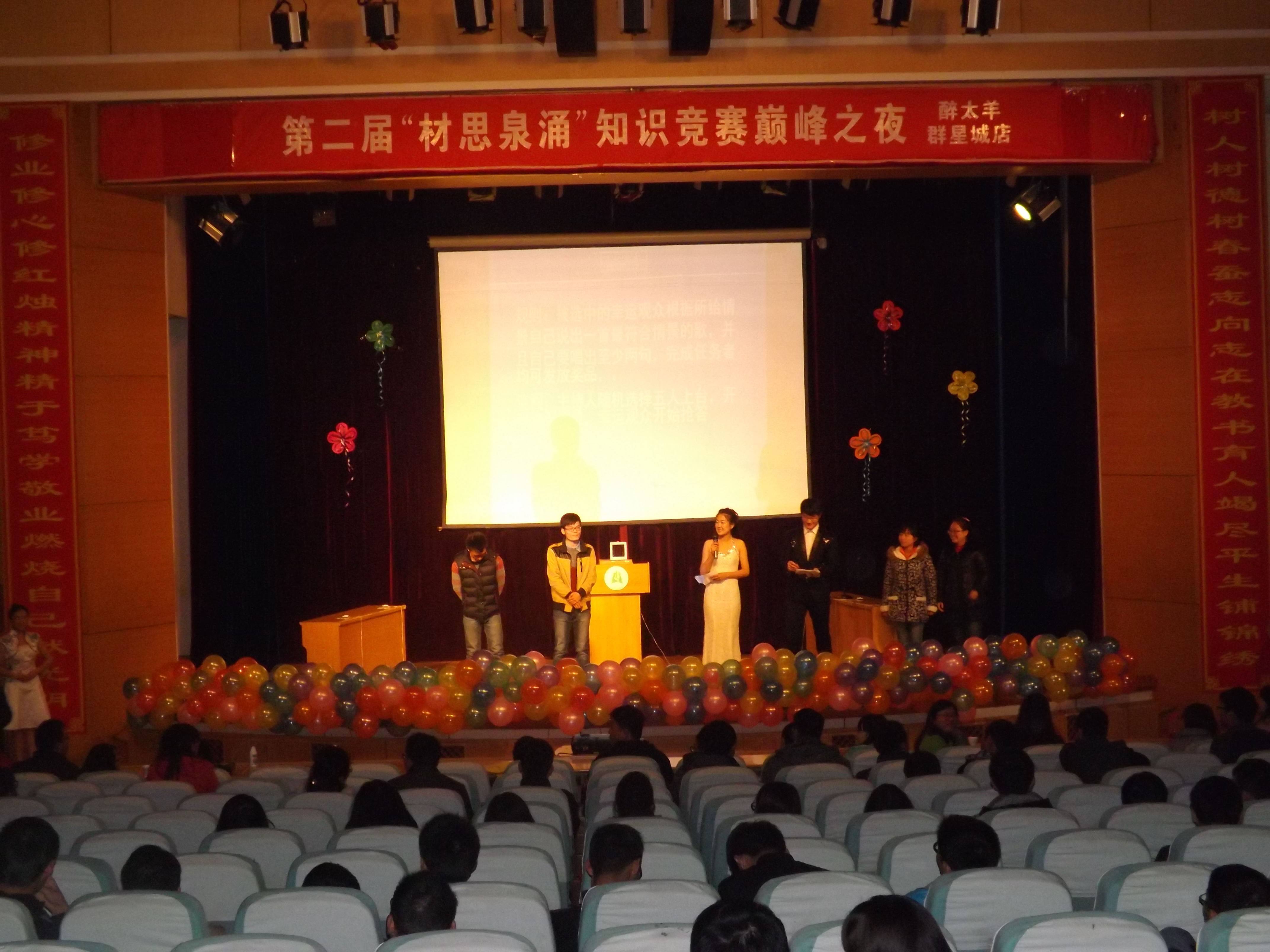 材料科技节“材思泉涌”激发同学们对材料科学的兴趣,以轻松活泼的形式来学习材料科学知识, 增长同学们对材料学的历史、现状以及发展全景的了解,丰富校园学术氛围。 ( 材料公司学通社王健、徐申正)