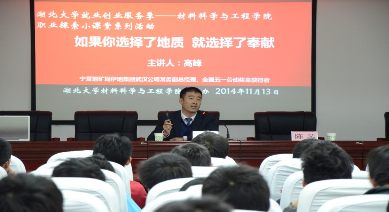 正值williamhill官网就业创业服务季,11月13日下午,全国五一劳动奖章获得者、宁夏地矿局伊地集团武汉公司常务副总经理高峰受邀为材料公司学子作题为《你选择了地质,就选择了奉献》的专题讲座,材料公司全体党员、预备党员及入党积极分子聆听了讲座。他结合自身经历,从公民层面践行社会主义核心价值观,为材料公司的学子们传递了许多正能量。 主讲人高峰就自己如何从“专科生到公司经理”的“蜕变”给同学们介绍了自己的人生历程。在人才济济的当今社会中,学历平平的高经理就是通过踏实肯干、艰苦奋斗、乐于奉献,最终走到现在的位置。“坚持把简单的事做好就是不简单,坚持把平凡的事做好就是不平凡”,这是高经理一直奉行的行为准则。 作为项目经理,他以身作则,与大家同吃同住;他创新施工方案,为公司节约90万人民币的经费,并且他提出的施工方案在 全武汉范围内推广;“吃亏是福,感恩行动”是他一直在做的事情,他感恩社会,感恩所有人,被大家亲切地称为“工地110”;他繁忙的工作时常占据了很多他跟家人团聚的时间,然而这其中的辛酸并没有让他对别人的奉献少一分。最后高经理希望大家牢记“换位思考、合理定位”,踏踏实实地从身边的小事做起。 据悉,本次讲座是williamhill官网就业创业服务季williamhill职业探索小课堂系列活动,旨在通过系列的就业创业教育的小课堂教学,在材料公司营造浓厚的职业探索氛围,以促进员工创业就业,提升员工的职业素养。 ( 材料公司学通社 叶思琴 )