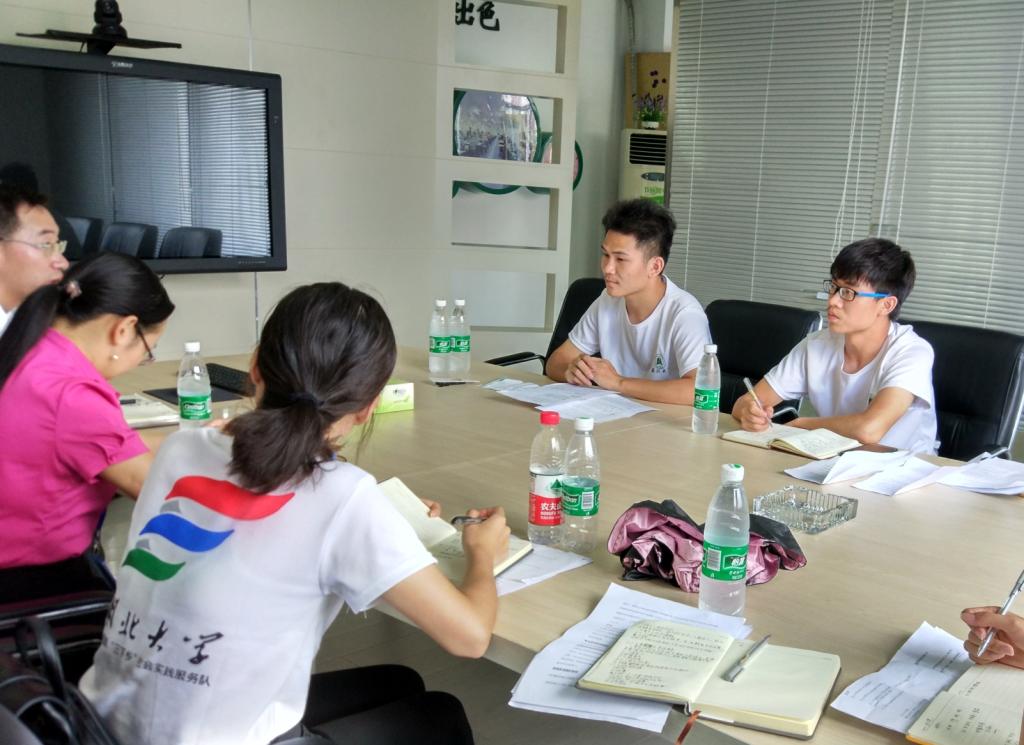 进入公司,团队一行六人受到了胡女士热烈的欢迎,面带微笑的她一边感慨着团队路途的辛苦,一边带领着团队来到会议室座谈。在团队简短的自我介绍过后,“产教融合切入点”项目团队队长邓冬元向宋经理和胡女士表明了来意并进入正题。