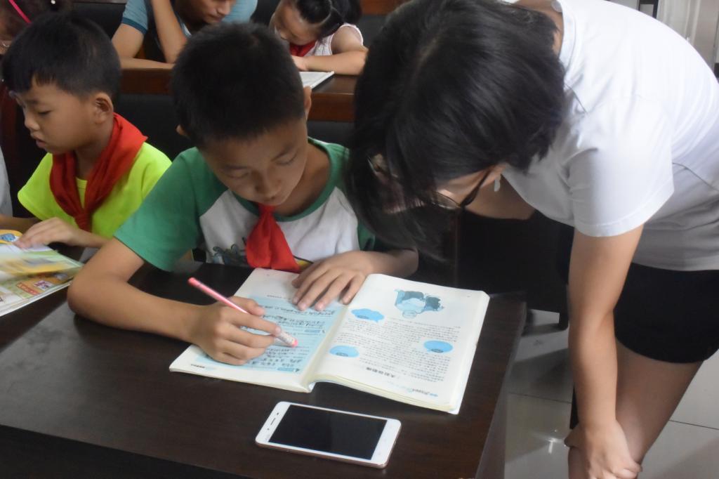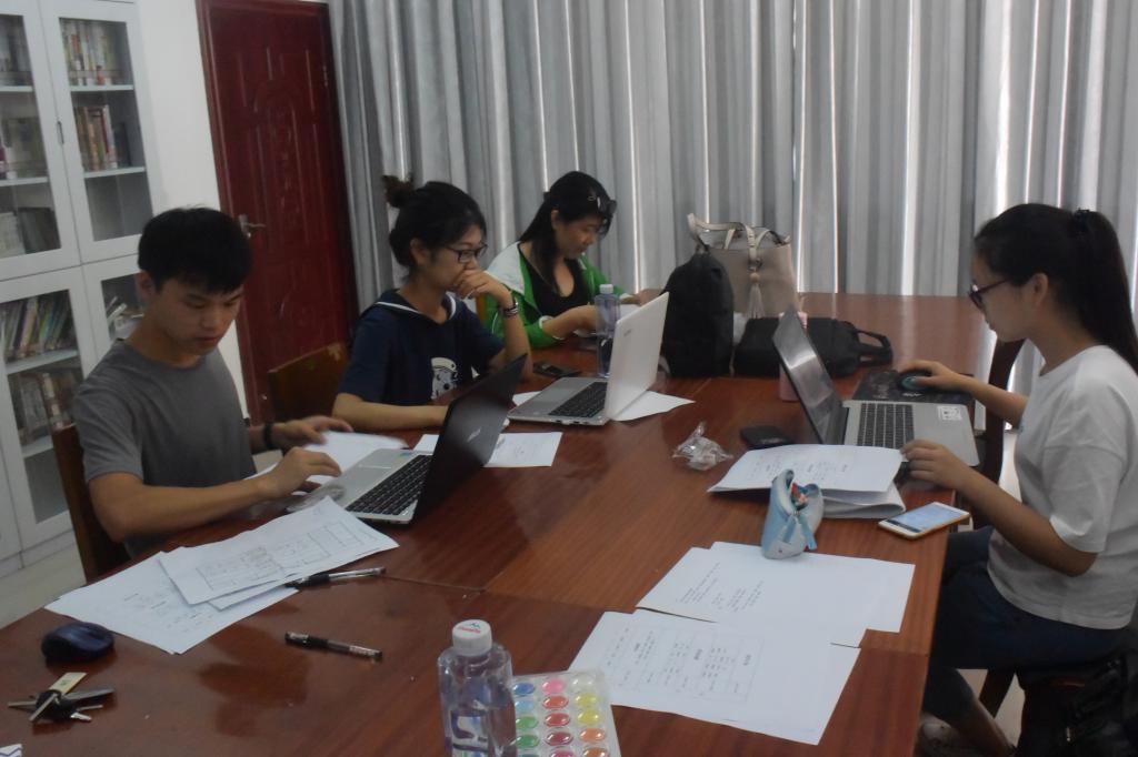(志愿者备课) 30日晚上,经过6个小时的颠簸,支教团队顺利抵达昭君镇,放下背包便开始了第二天的课程开展会议和具体事项任务安排。 31日,支教团队在当地志愿者的带领下来到了昭君镇希望家园,第一次与即将朝夕相处半个月的孩子们见面。在略带紧张的自我介绍之后,志愿者们渐渐进入状态。上午的作业辅导期间,志愿者们分工合作,当天下午有课的志愿者们在办公室里备课,其他没课的志愿者们则在教室中辅导员工们做作业。从队长毛承鹏口中了解到:“志愿者们分为两组,一组负责高年级班(六年级及以上的员工)的教学,另一组负责低年级(六年级以下的员工)的教学。每一组都有两个主讲老师和三至四位助教,每天下午教授两个课程。”