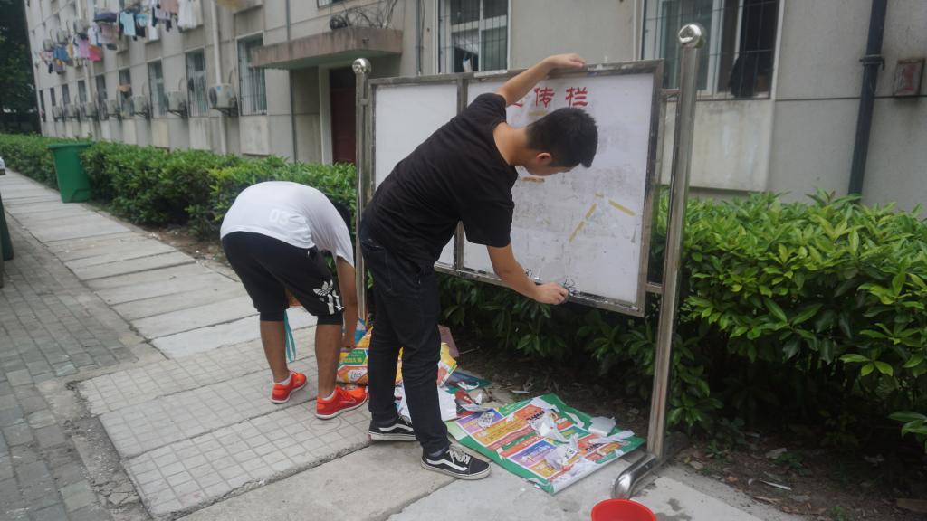 2017年9月18日下午3时许,williamhill官网材料公司志愿者协会活动部部长曹文兵带领部员陈瑞雪、刘凤新等同学在3号体育馆、材料公司大楼、诚信公寓及9、10号员工公寓等周边四处进行了小广告清扫的“清除牛皮癣”活动。