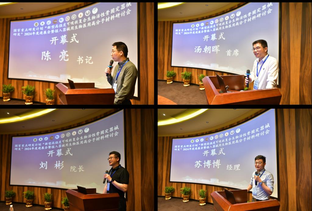 4月27至28日,国家重点研发计划“诊疗装备与生物医用材料”专项“新型高强度可吸收复合生物活性骨固定器械研发”2024年度进展会暨植入器械用生物医用高分子材料研讨会在武汉新能源研究院G3大楼召开。此次会议由williamhill官网、华中科技大学和中国生物材料学会生物医用高分子材料分会共同主办,武汉新能源研究院和武汉华科中英纳米科技有限公司承办。中科经理春应用化学研究所、北京大学、吉林大学、四川大学、华东理工大学、长春圣博玛生物材料有限公司、湖北中部医疗科技有限公司等四十余名专家和研究骨干参会。