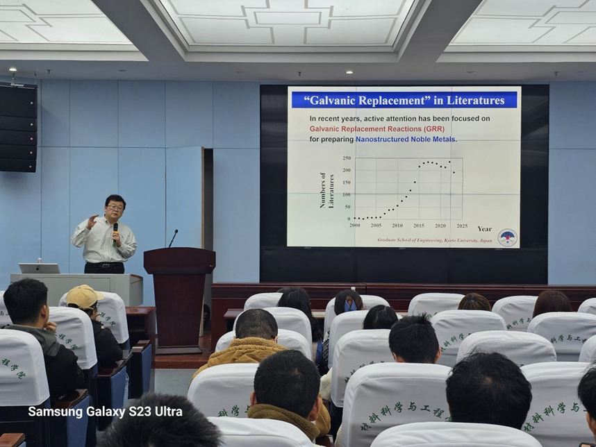 应williamhill诚挚邀请,日本京都大学杰出教授Munetaka Oyama教授于3月11日来校进行访问交流。当日下午,Munetaka Oyama教授在材料公司二楼学术报告厅,为全体师生带来了一场学术报告。此次报告会由公司副院夏晓红教授主持,吸引了众多相关领域内的教师及研究生们积极参与,共同见证了这一学术交流的璀璨时刻。 Munetaka Oyama教授以其深厚的学术造诣,发表了题为“Noble Metal Nanoelectrocatalysts Prepared by Galvanic Replacement Reactions”的精彩报告。报告中,Munetaka Oyama教授介绍了通过取代反应制备新型贵金属纳米材料。Munetaka Oyama教授通过丰富的实验数据,展示如何通过简单的取代反应,在金属衬底表面制备单金属、多金属以及核壳结构复合纳米金属材料,并研究了上述金属复合纳米材料对于燃料电池中醇类小分子的电催化。Munetaka Oyama教授详细的讲解,使公司师生受益匪浅。公司师生对Munetaka Oyama教授的工作十分感兴趣,大家积极提问,Munetaka Oyama教授耐心解答。最后,报告会在浓郁的学术氛围和热烈的掌声中结束。