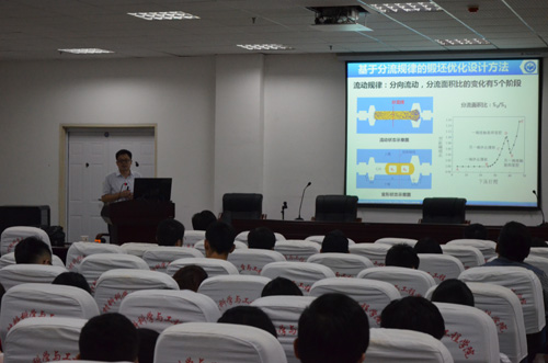 报告中,王新云教授以汽车轻量化技术为出发点,详细介绍了材料成形与模具技术国家重点实验室-精密塑性成形研究室在铝合金零件成形方面取得的众多创新性研究成果,其中“多工位精锻关键技术与装备”荣获2016年国家技术发明二等奖。王新云教授还就铝合金控制臂零件的粗晶问题,全流程组织演化规律,详细介绍了晶粒尺度的变化在金属精密成形中的作用机理。报告最后,王新云教授还就智能制造技术在精密成形中的应用前景进行了详细介绍。王新云教授深入浅出,广征博引的报告让与会的师生受益匪浅。报告结束后,何云斌副经理进行了总结,他指出王新云教授的报告给广大师生带来了全新的研究思路,充分体现了学科交叉的重要性。会议交流环节,大家积极提问,王新云教授用渊博的知识进行了耐心解答,双方展开了热烈讨论。最后,学术报告会在浓郁的学术氛围和热烈的掌声中圆满结束。