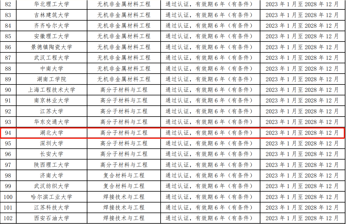 近日,中国工程教育专业认证协会、教育部教育质量评估中心发布通过工程教育认证专业名单,公司高分子材料与工程专业通过认证,有效期6年(2023年1月至2028年12月)。