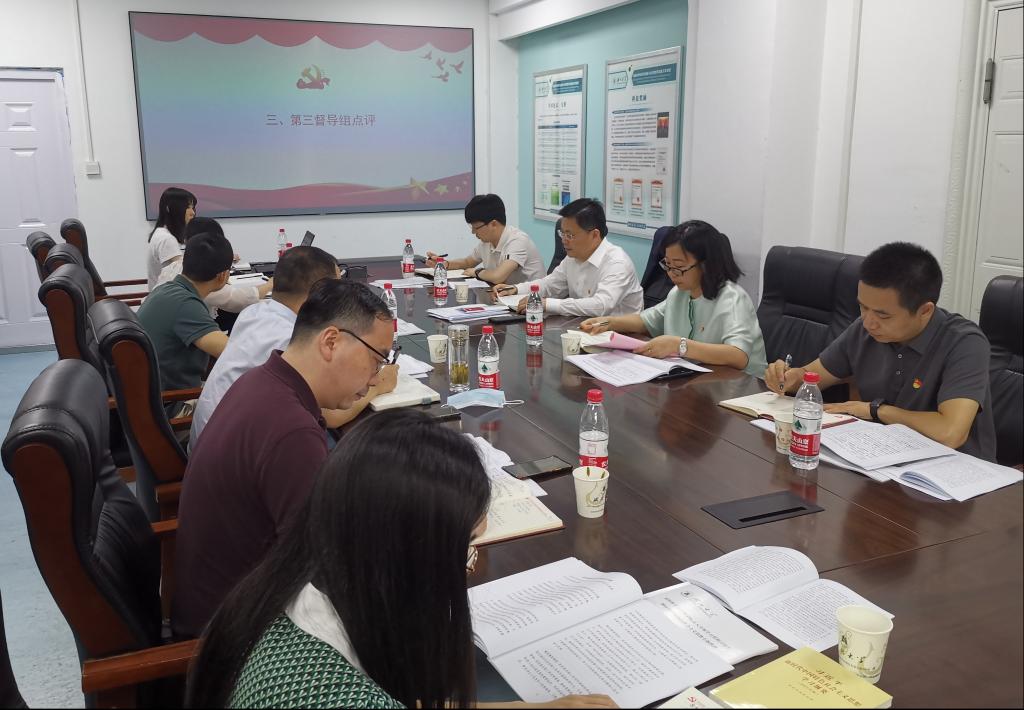 6月12日下午,公司主题教育第三督导组来院开展督导检查并巡视旁听公司党委理论学习中心组集中学习。公司党委副书记祝欣,第三督导组成员卢轶婷、刘东、陈冰等参加督导检查。 督导组巡视旁听了公司党委理论学习中心组6月份集中学习,听取了公司学习贯彻习近平新时代中国特色社会主义思想主题教育开展情况汇报,并现场查阅了有关学习资料。
