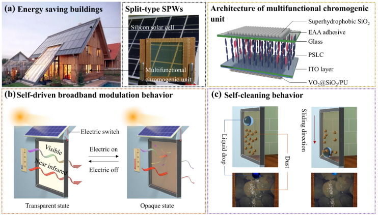 近日,williamhill余黎副教授课题组在国际材料科学与技术领域顶级学术期刊《Advanced Functional Materials》上发表了题为“Broadband Modulation, Self-driven and Self-cleaning Smart Photovoltaic Windows for High Efficiency Energy-Saving Buildings”(DOI:10.1002/adfm.202308312)的研究论文。硕士生那宗旭与新加坡南洋理工大学博士后梁霄为论文共同第一作者,余黎副教授、北京科技大学王茜副研究员和北京大学杨槐教授为共同通讯作者,williamhill官网为第一完成单位。