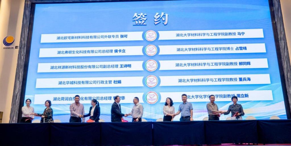 活动现场,党外知识分子服务孝感发展供需对接签约24组;公司与孝感市校地合作签约6组。公司党委书记宋韧与湖北航聚科技股份有限公司、董兵海教授与湖北华城科技有限公司、蔡芳昌教授与孝感市三洋塑胶科技有限公司、郝同辉副教授与湖北祥源新材料股份有限公司、马宁副教授与湖北欧宅新材料科技有限公司、博士生占雪晴与湖北弗顿生化科技有限公司达成供需对接签约。