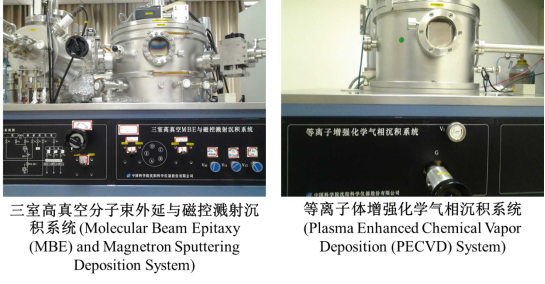 Molecular Beam Epitaxy (MBE) and magnetron sputtering deposition system Plasma enhanced chemical vapor deposition (PECVD) system Vacuum tube furnace RTP-500Fast annealing furnace ZHD-300M2 high vacuum evaporation coating machine |